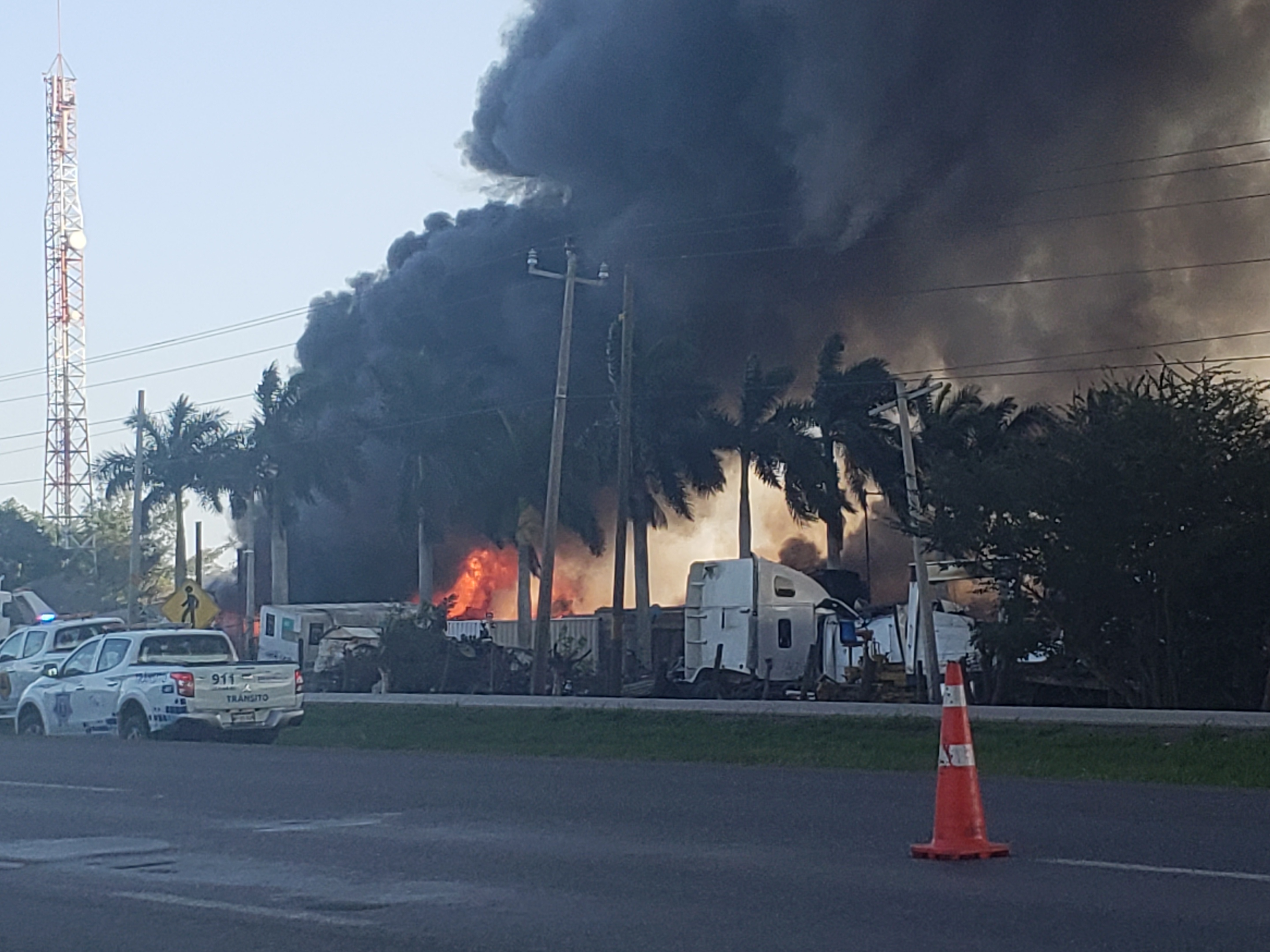 Altamira, Tamaulipas.-(29 Enero 2019)Personal de la Procuraduría General de la República comenzó con el peritaje para conocer la causa raíz del incendio de este lunes en el mesón federal propiedad de Grúas Aries ubicada en un predio a bordo de carretera en el ejido Miguel Hidalgo de Altamira.