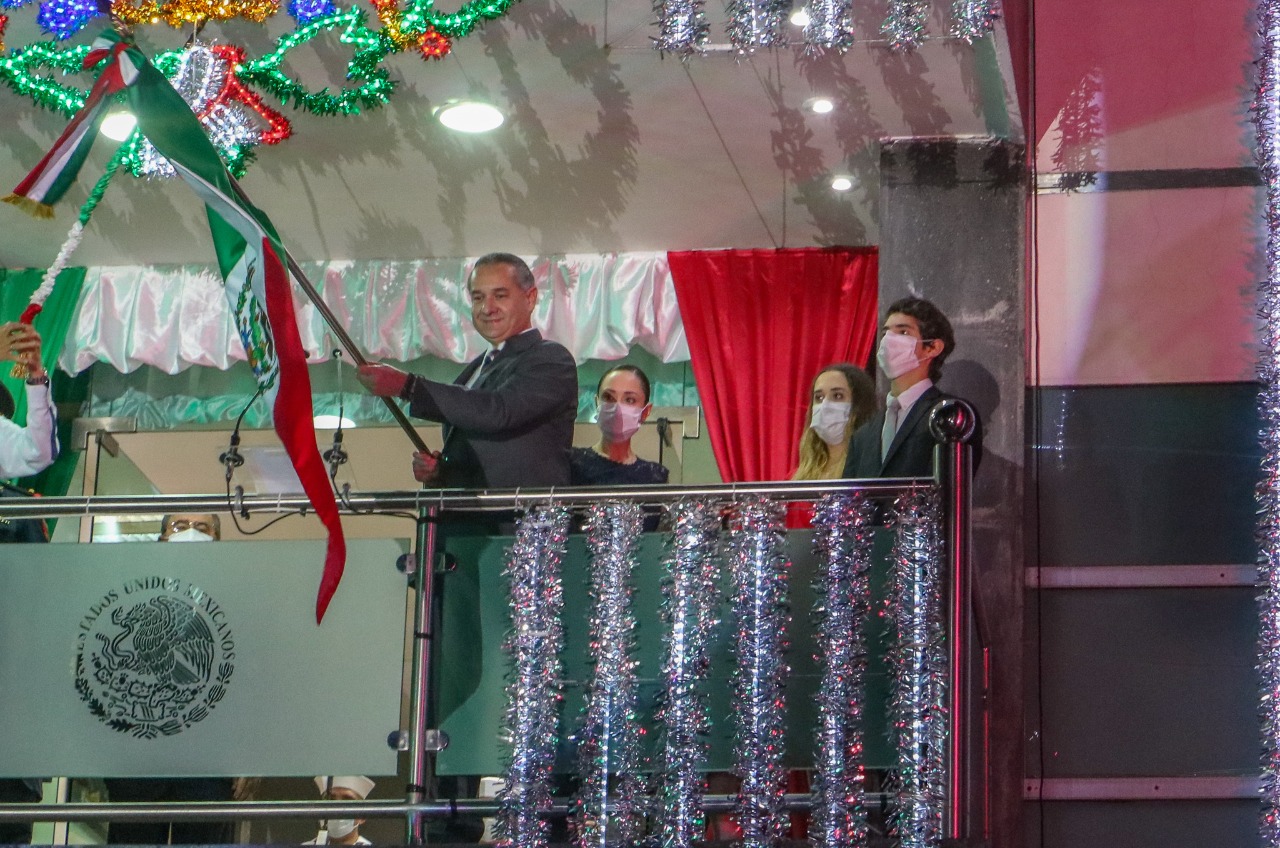 Cd. Madero,Tamps. (16 Septiembre 2020)Con luces tricolor luciendo sobre el palco de la presidencia municipal, el alcalde Adrián Oseguera Kernion, encabezó para miles de maderenses el tradicional Grito de Independencia, a través de las diferentes plataformas digitales.