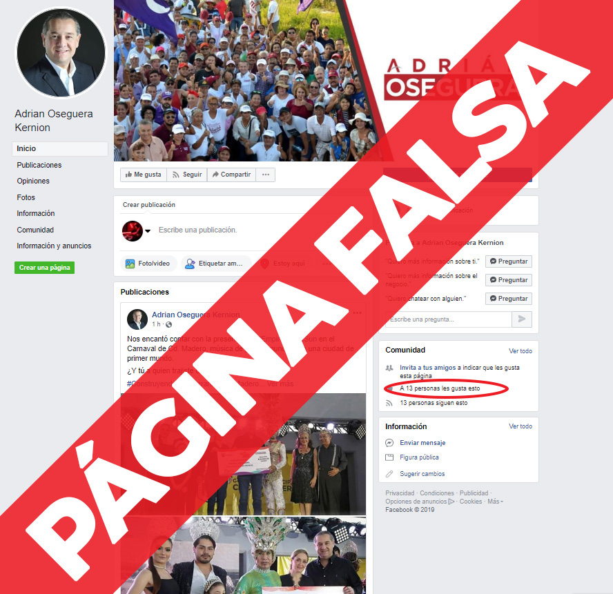Cd.Madero,Tamps. (13 Marzo 2019)Ante la creación de páginas falsas del Municipio de Madero en Facebook y la detección de vehículos oficiales clonados, aseguró el alcalde Adrián Oseguera Kernion que no permitirá que terceros continúen afectando la imagen de su Gobierno.