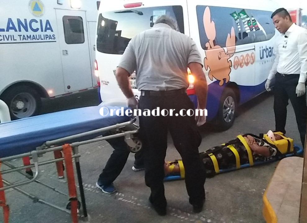 Tampico,Tamps.- (10 Octubre 2019)Con dolorosas lesiones en diferentes partes del cuerpo resultó una anciana, después de ser atropellada por una camioneta de transporte público al servicio de la empresa Urban.