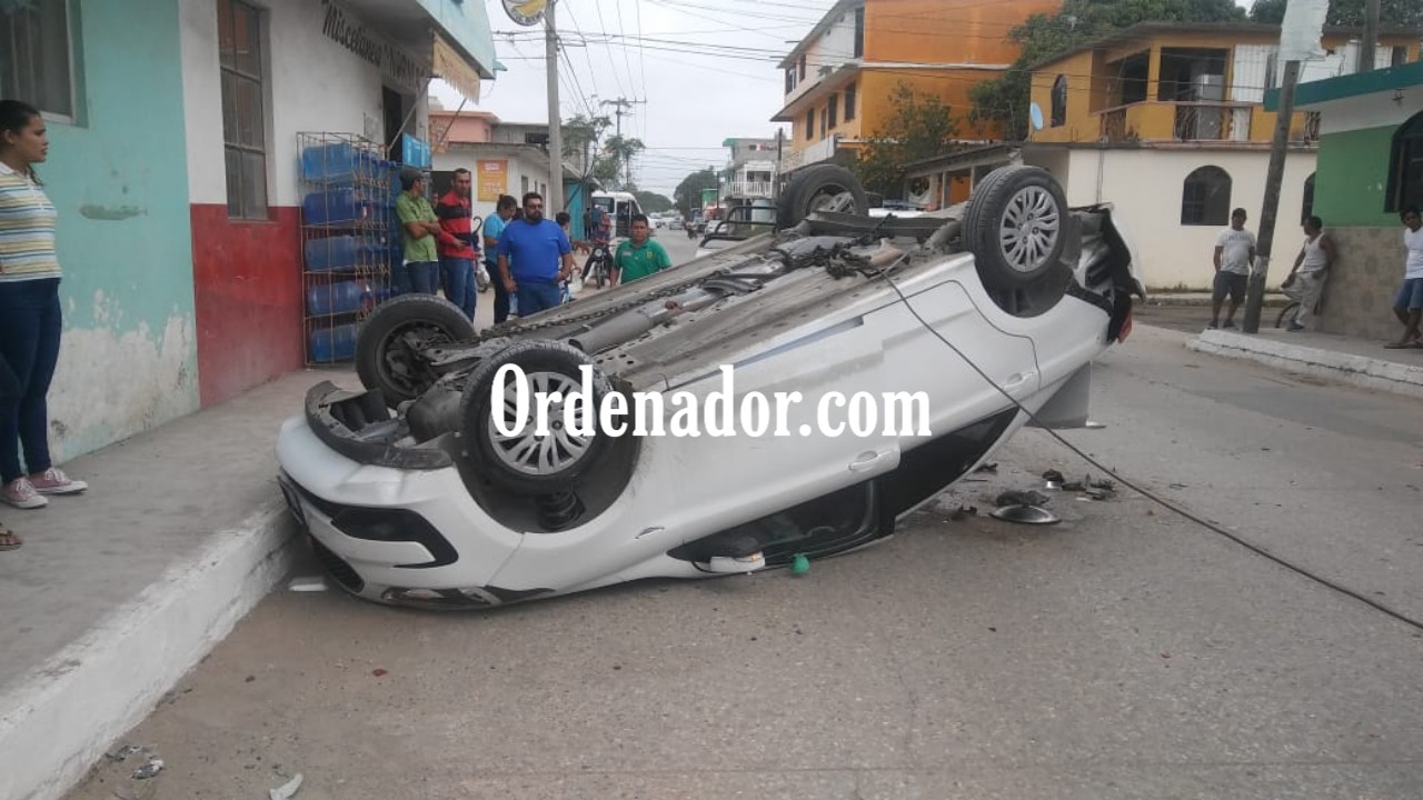 Sufren aparatosa volcadura en vehículo en Tampico