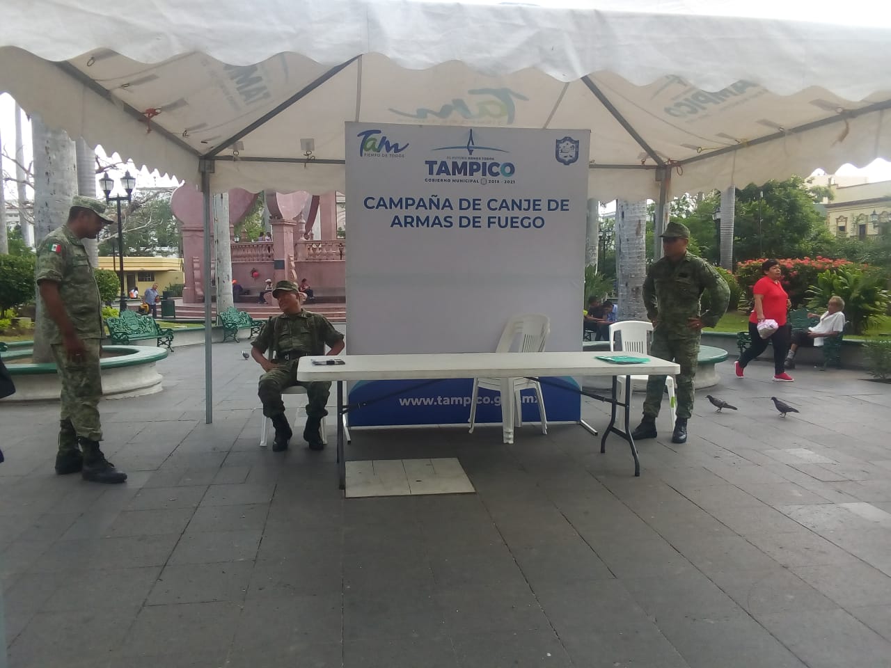 El módulo de la campaña de canje de armas de fuego por efectivo, se mantendrá lo que resta de este mes en la plaza principal de Tampico de 8 de la mañana a 1 de la tarde.