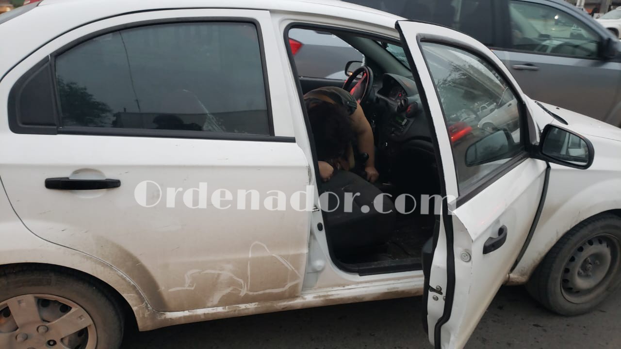 Elementos de la Policía Estatal Acreditable acudieron al sitio en mención donde ubicaron un automóvil Chevrolet Aveo color blanco con iumpactos de bala, y en su interior una pareja que había sido el blanco de los pistoleros.