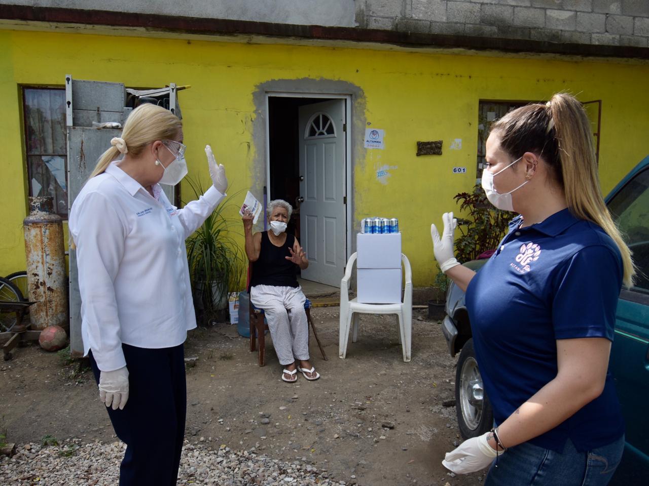 La jefa edilicia y la presidenta del voluntariado visitaron a las familias casa por casa, refrendando su compromiso para garantizarles mejores condiciones de vida, indicando que tanto el Gobierno de Altamira, como el Sistema DIF Municipal, están para servirles en todo momento, especialmente ante las dificultades que se presentan en la actual contingencia sanitaria.