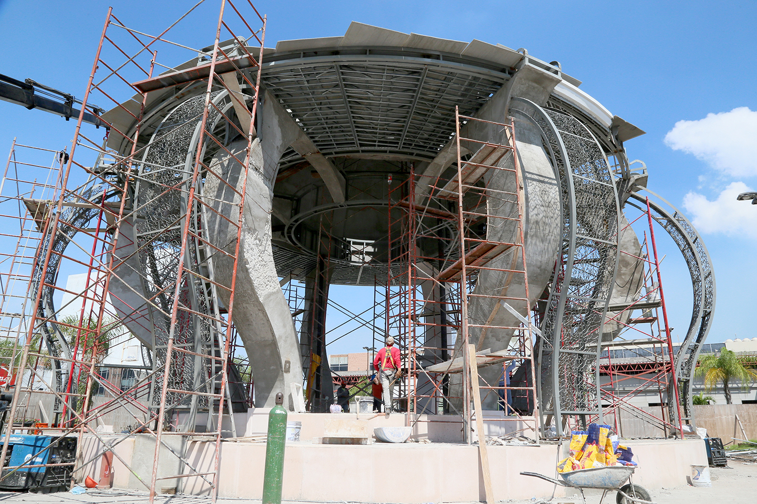 “Estamos ya en los últimos detalles colocando las columnas, se está forrando y poniendo lo que es el granito. El piso registra ya un avance del sesenta por ciento y estimamos que en una semana estaremos poniendo el acabado de la cúpula”, explicó.
