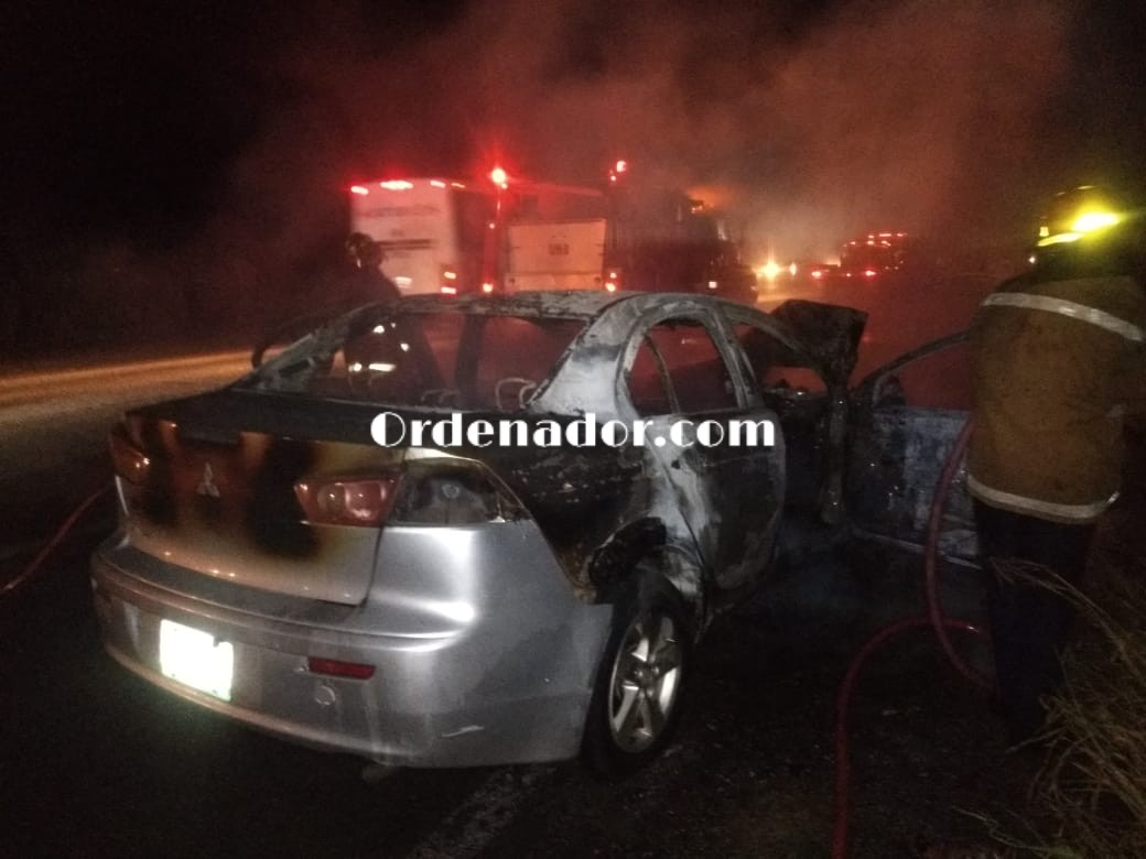 Se trató de un vehículo de la marca mitzubishi Lancee en color plateado con placas XKE-56-09 del estado de Tamaulipas mismo que sus ocupantes de nombre Guillermo "N" y Angélica "N" se pusieron a salvó después del impacto e incendio.