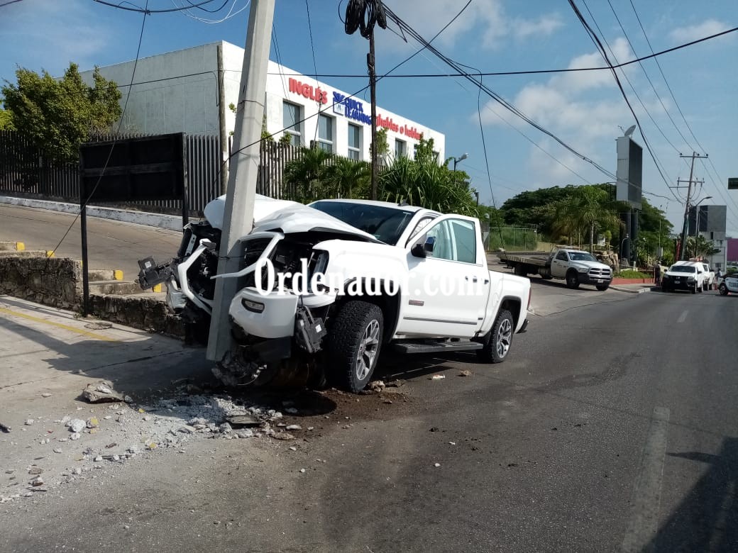 La unidad colisionada, una camioneta Sierra color blanca con placas del estado de Veracruz, era guiada en dirección norte a sur por la Avenida Hidalgo a excesiva velocidad, y por ello su tripulante perdió el control del volante proyectandose contra el poste al cual estuvo a punto de derribar.