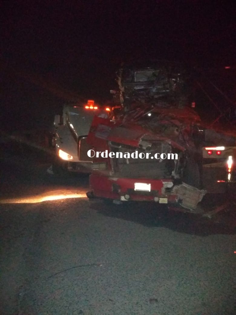 Se trata de un tractocamión de la marca Freightliner en color rojo y remolcaba una nodriza cargada con vehículos americanos, conducido de norte a sur por un ciudadano de Guatemala.
