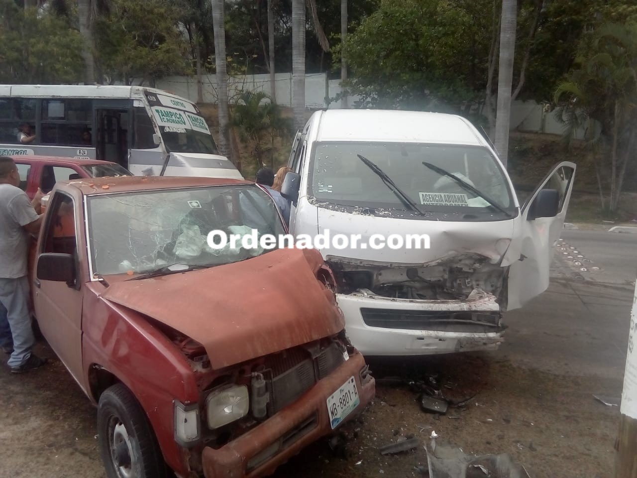 Tampico, Tamps- (5 Septiembre 2019 ) Un total de 6 personas resultaron lesionadas al registrarse un choque la mañana de este jueves justo frente al 15 Batallón de Infantería, en donde una camioneta de transporte de personal invadió carril contrario impactando a otra particular.