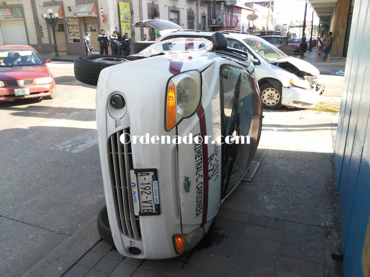 Este choque y volcadura se registró a las 09:30 horas en el cruce de las calles Colón y Altamira de la zona centro de Tampico.