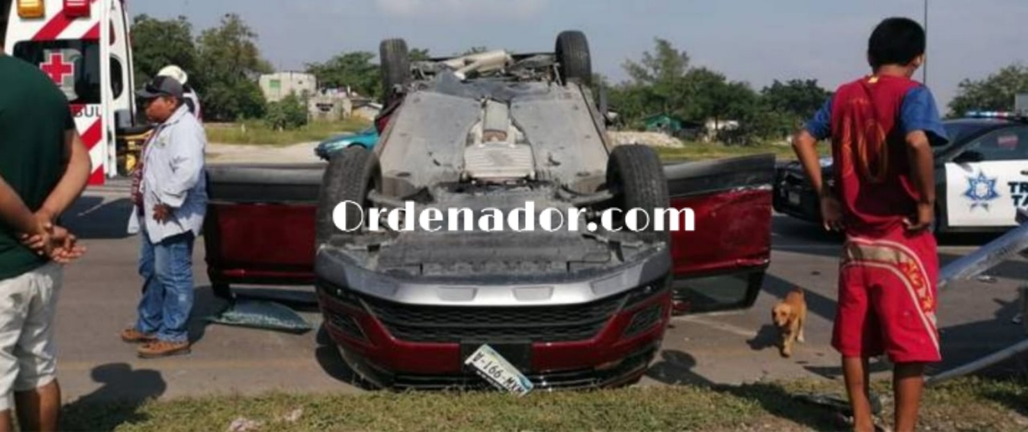 Esta unidad impactó a su paso a otra camioneta Volkswagen Tiguan color guinda misma a la que proyectó provocando que terminara volcada, resultando lesionado el matrimonio que bajaba en el interior.