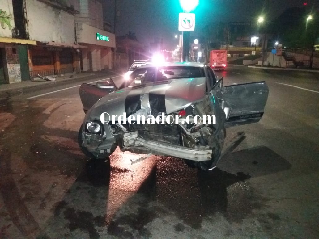 La unidad en mención circulaba a exceso de velocidad en dirección sur a norte por la Avenida Hidalgo, y por ello su tripulante perdió el control y trepó al camellon, chocando a su pasó al poste de los controles de las cámaras de vigilancia.