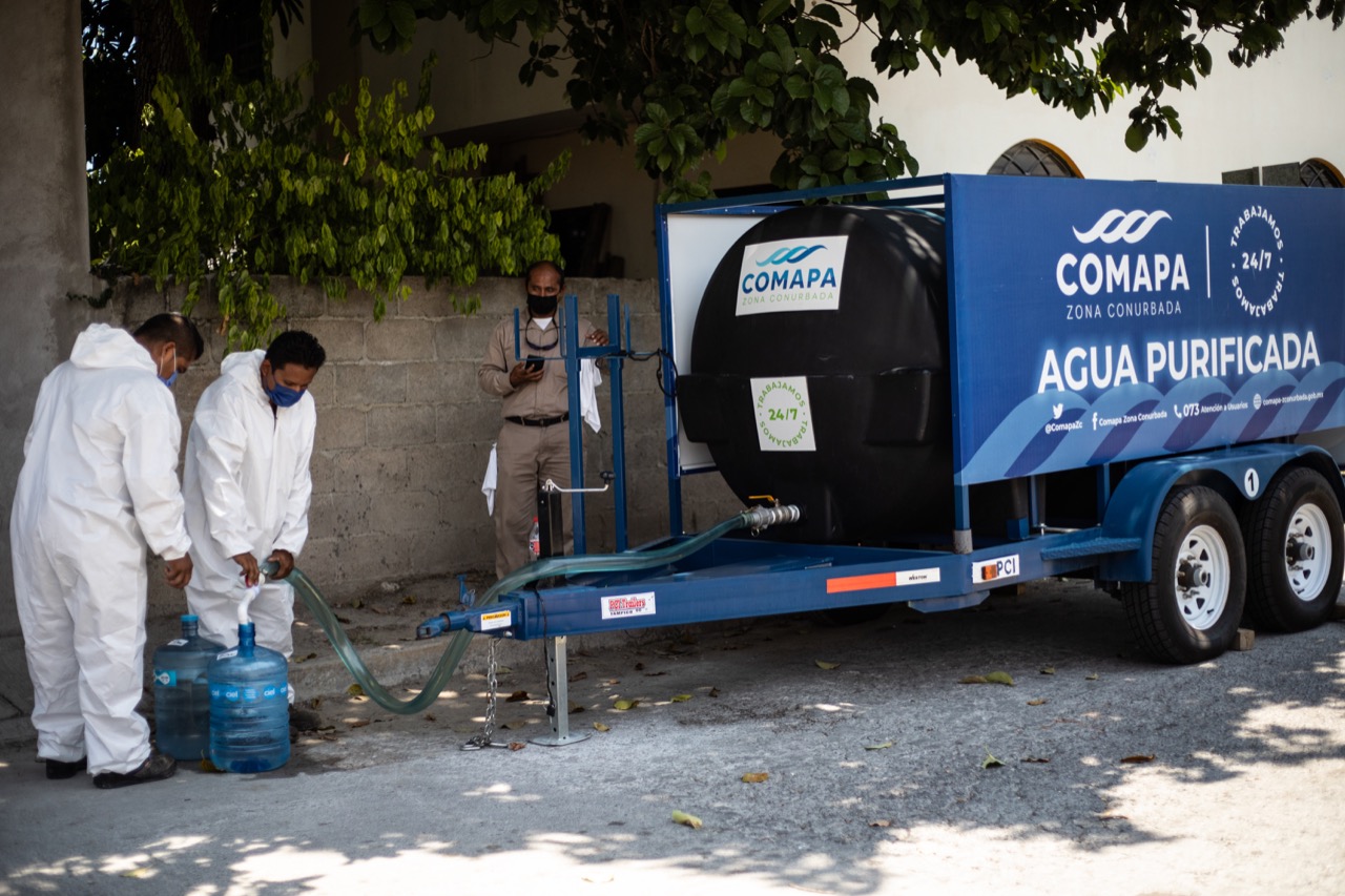 En esta ocasión la Comapa trasladó la nodriza de agua purificada para otorgar de manera gratuita el insumo a los vecinos de este lugar, donde con triciclos y carritos se acercaron a la pipa para llenar sus garrafones con el vital líquido.