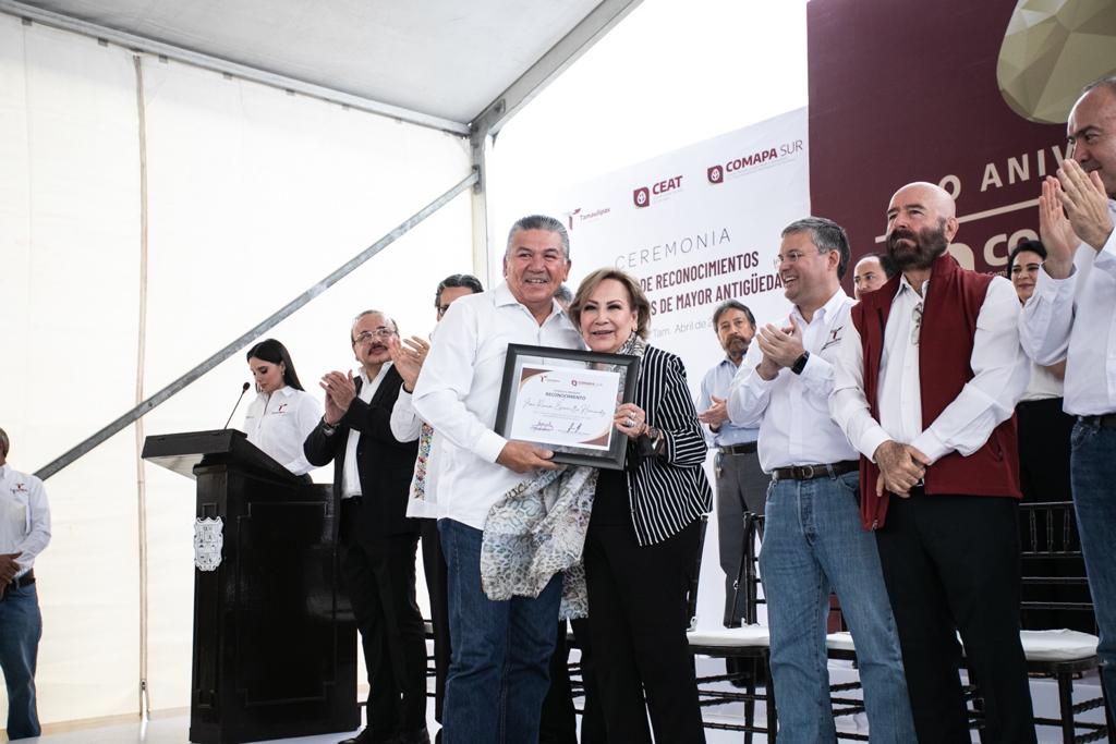 Durante la ceremonia, el gerente general de Comapa Sur, Mtro. Francisco José González Casanova, hizo entrega de reconocimientos y estímulos económicos a los trabajadores de mayor antigüedad y productividad.