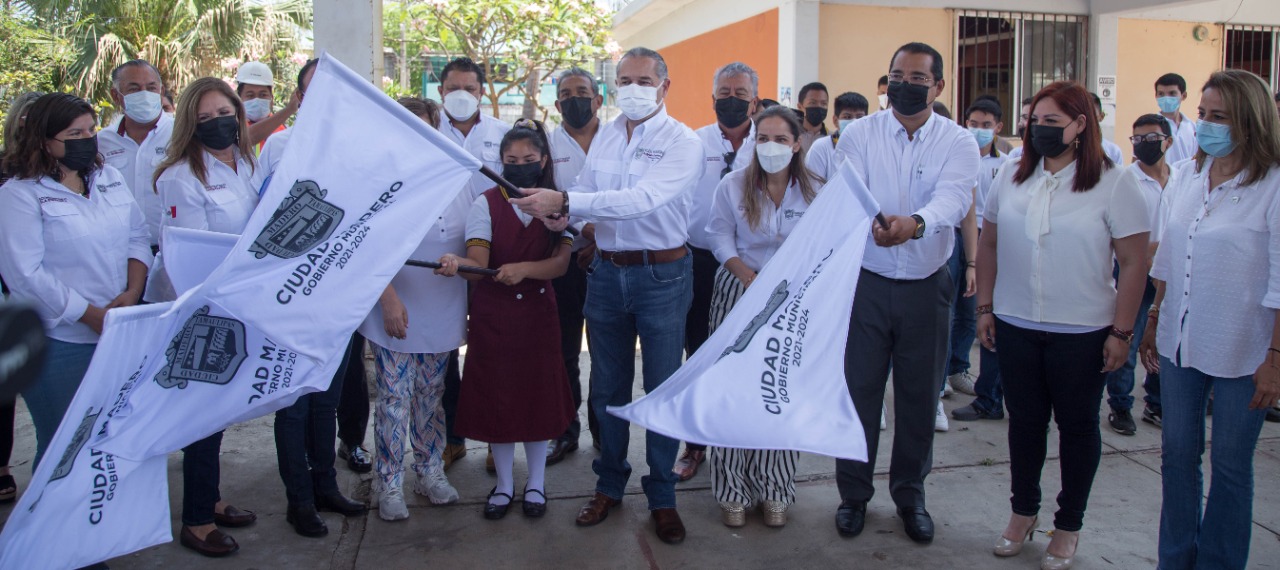 Cd. Madero, Tamps. (11 Junio 2022)El mejoramiento de la infraestructura educativa sigue avanzando durante el Gobierno del alcalde Adrián Oseguera Kernion, al llevar más obra pública a decenas de planteles educativos, como es la construcción de techumbres, comedores escolares, bardas perimetrales, cuartos sanitarios y brindando el mantenimiento de áreas verdes.