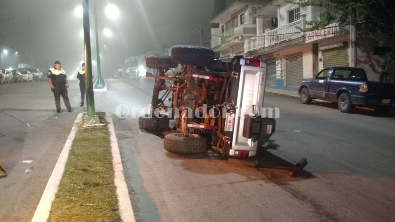 Se trata de una camioneta de la marca Jeep, con suspensión elevada, misma que era conducida de oriente a poniente sobre la Calzada y aparentemente al conducir bajo los efectos del alcohol, perdió el control para subir al camellón central, impactar un poste de aumbrado público y terminar por volcar.