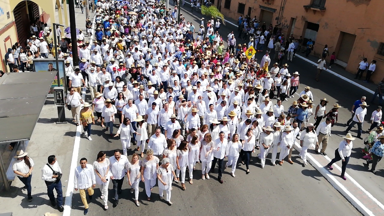 Como ya es tradición un grupo de altamirenses caminó desde calle Palma hasta la plaza de los Fundadores sobre la avenida Hidalgo, en dónde el presidente municipal de Tampico, Jesús Nader acompañado de la presidenta del DIF, Aída Feres de Nader recibieron a la alcaldesa de Altamira, Alma Laura Amparan Cruz.