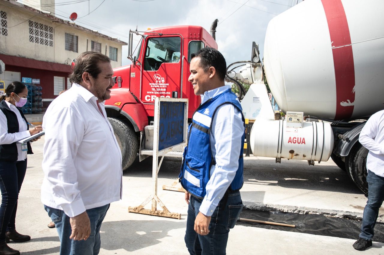 Tampico,Tamps. (23 Agosto 2022)El gerente general del organismo operador del agua en Tampico y Ciudad Madero, Gabriel Guerra Turrubiates dio inicio al programa de pavimentación de obras que estaban pendientes de rehabilitación del concreto en diferentes vialidades de la zona sur del estado.