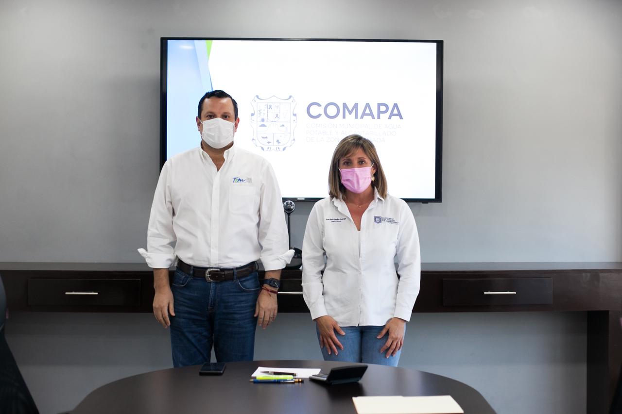 Tampico,Tamps. (4 Noviembre 2020)En la sala de juntas de la Comapa Zona Conurbada, el Gerente del Organismo Jorge Federico Rivera Schotte, recibió a la Diputada Local por el Distrito XXII por Tampico, Rosa María González Azcárraga, con quien compartió los avances en las obras que actualmente realiza el Gobierno del Estado encabezado por el Gobernador Francisco García Cabeza de Vaca en materia de cambio de tuberías en la zona centro, con las que se verán beneficiados miles de habitantes de la Ciudad y Puerto de Tampico, además de reiterarle su apoyo en las diversas gestiones que la legisladora realice con la ciudadanía.