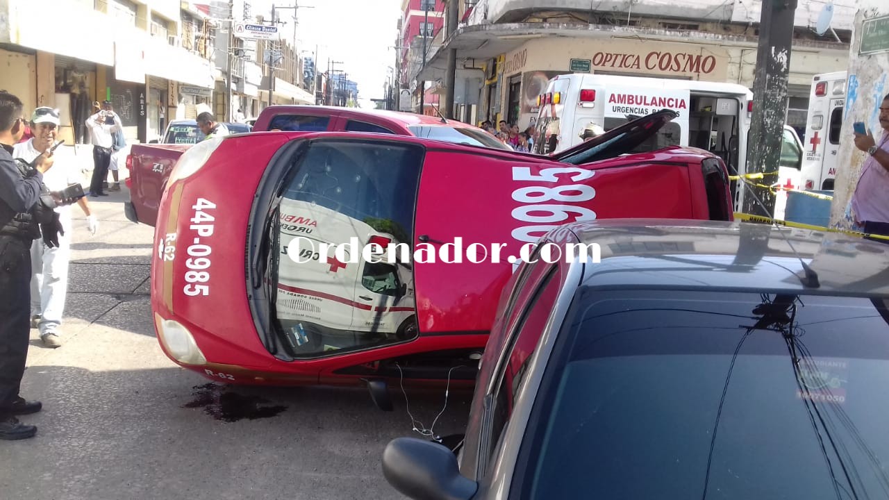 Tampico,Tamps. (5 Junio 2019 ) Cuatro ocupantes de un carro de la ruta Obrera-Tampico, el operador y sus tres pasajeros, resultaron lesionados al volcar la unidad que previamente fue chocada por una camioneta tipo pick-up, cuyo operador no respetó una señal fija de alto.