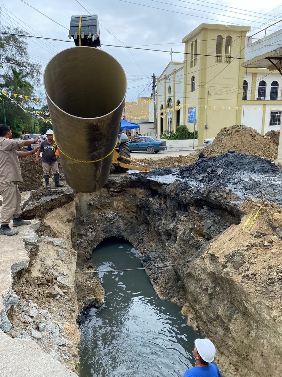 La obra consiste en la reposición de un colector de 1.52 metros de diámetro, debido a que la tubería original colapsó, ocasionando un hundimiento en el pavimento de la calle, lo cual fue detectado de manera oportuna.