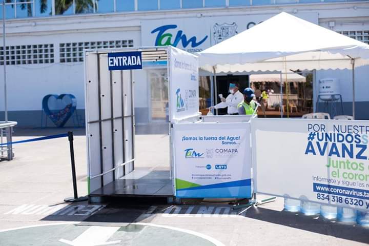 Se afirma que funciona un filtro de ingreso por un túnel sanitizante, en el interior se mantiene “sana distancia”, uso obligatorio de cubrebocas, aplicación de gel antibacterial además de: “resguardo y asilamiento preventivo”.