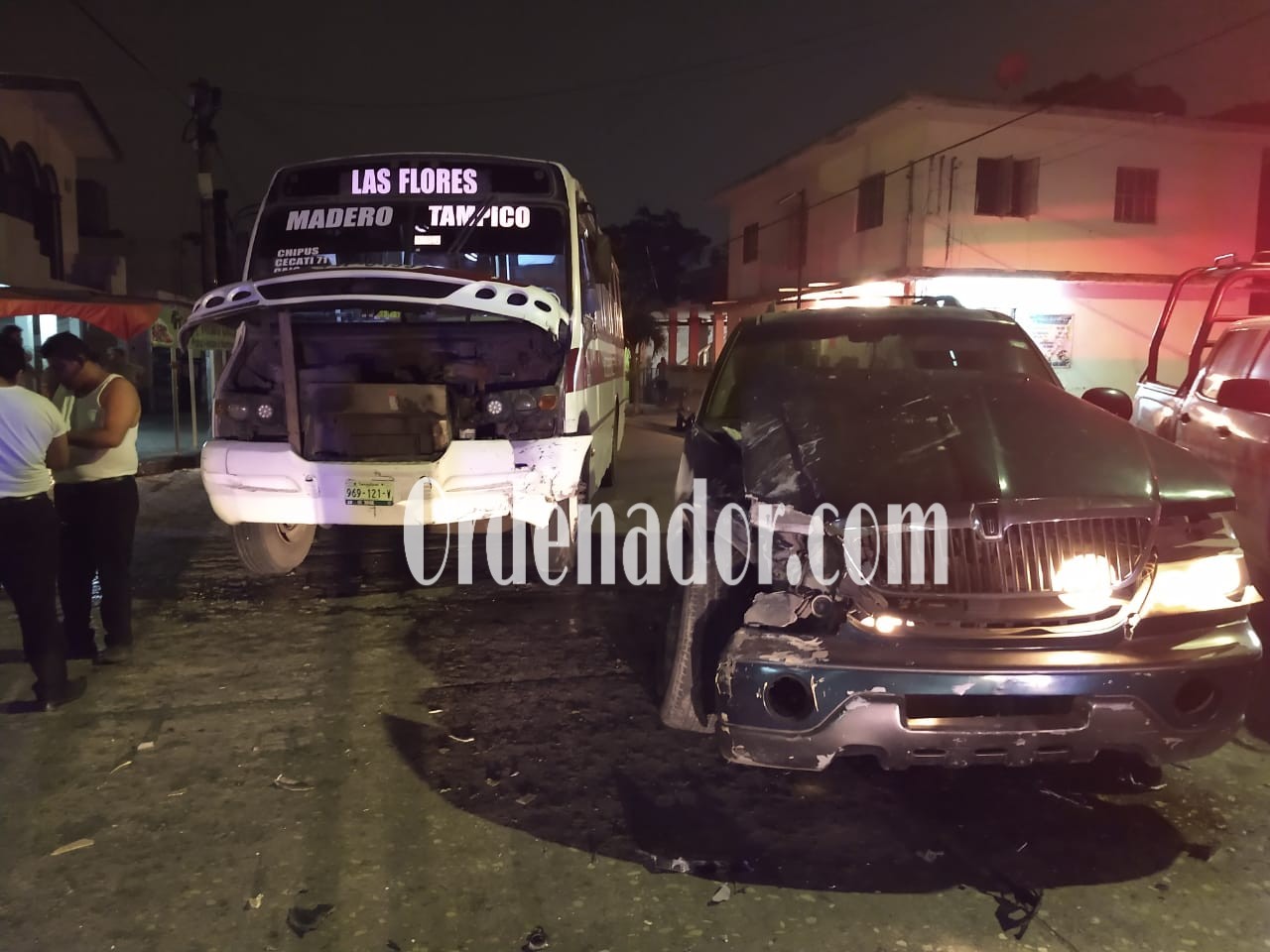 Se trata de un microbús de la ruta Tampico-Madero- Las Flores, mismo que su conductor omitió el alto, y con ello sobreviniendo el accidente en el que 10 pasajeros sufrieron de algunos golpes, motivo por el cual tuvo que hacerse presente la Cruz Roja de la localidad.