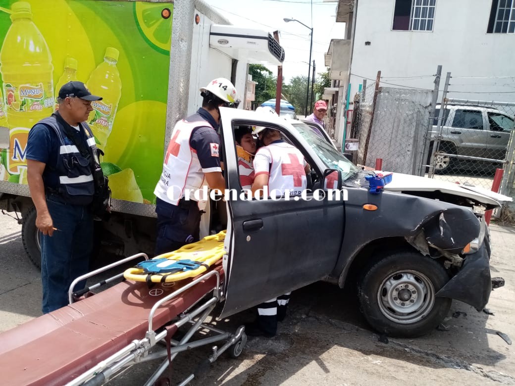 Al llegar al cruce con la Rosalio Bustamante su tripulante no hizo el alto correspondiente, impactando a su paso a una camioneta tipo estaquitas color blanco propiedad de la empresa Leche Marsella.