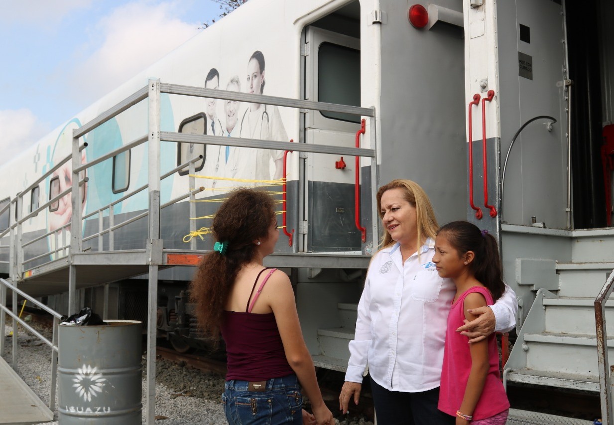 Altamira,Tamps. (29 Septiembre 2019 ) Resultado de las gestiones de la alcaldesa Alma Laura Amparán Cruz y de la fructífera sinergia que mantiene su gobierno con la empresa FERROMEX, llegó a Altamira el Doctor Vagón “El Tren de la Salud’’, de la Fundación Grupo México, que ofrecerá a la comunidad en general servicios médicos gratuitos en consulta general, dermatología, pediatría, geriatría, odontología, quiropráctica y rehabilitación física, optometría, audiometría, servicio integral para la mujer, psicología, nutrición, planificación familiar, pruebas de laboratorio y estudios de gabinete, además de clínica integral para el paciente diabético.