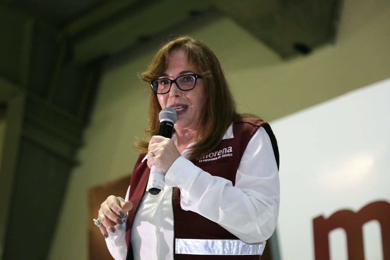 Fue en el evento realizado en la Unidad Deportiva, donde se mostró el músculo de Adrián Oseguera, con más de 2mil asistentes que esperaban verlo pero que por cuestiones de la Ley Electoral no pudo asistir, donde la dirigente nacional, resaltó el buen trabajo de Oseguera Kernion.