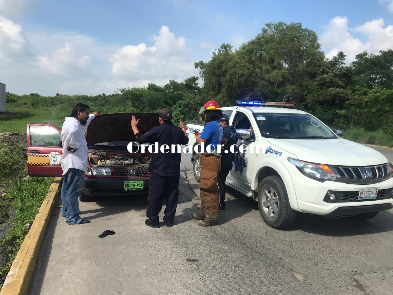 Altamira, Tamps- (9 Julio 2019) Un carro de ruta casi se incendia de no ser por la oportuna intervención de personal de mantenimiento de la Clínica Número 16 del IMSS mejor conocida como La Morita, quienes con extintores lograron apagar las llamas.
