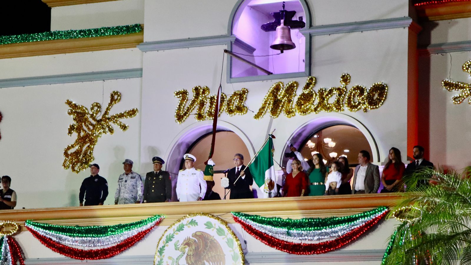“¡Mexicanos!...¡Altamirenses!...¡Vivan los héroes que nos dieron Patria y Libertad!, ¡Viva Miguel Hidalgo y Costilla!, ¡Viva José María Morelos y Pavón!, ¡Viva Josefa Ortiz de Domínguez!, ¡Viva Allende!, ¡Viva Aldama!, ¡Viva Vicente Guerrero!, ¡Viva la Independencia Nacional!...¡Viva Altamira!...¡Viva Tamaulipas!...¡Viva México!...¡Viva México!...¡Viva México!’’, gritó Martínez Manríquez, tras tañer la campana del inmueble para exaltar a los héroes que iniciaron el movimiento de independencia, al tiempo que ondeaba la bandera nacional.