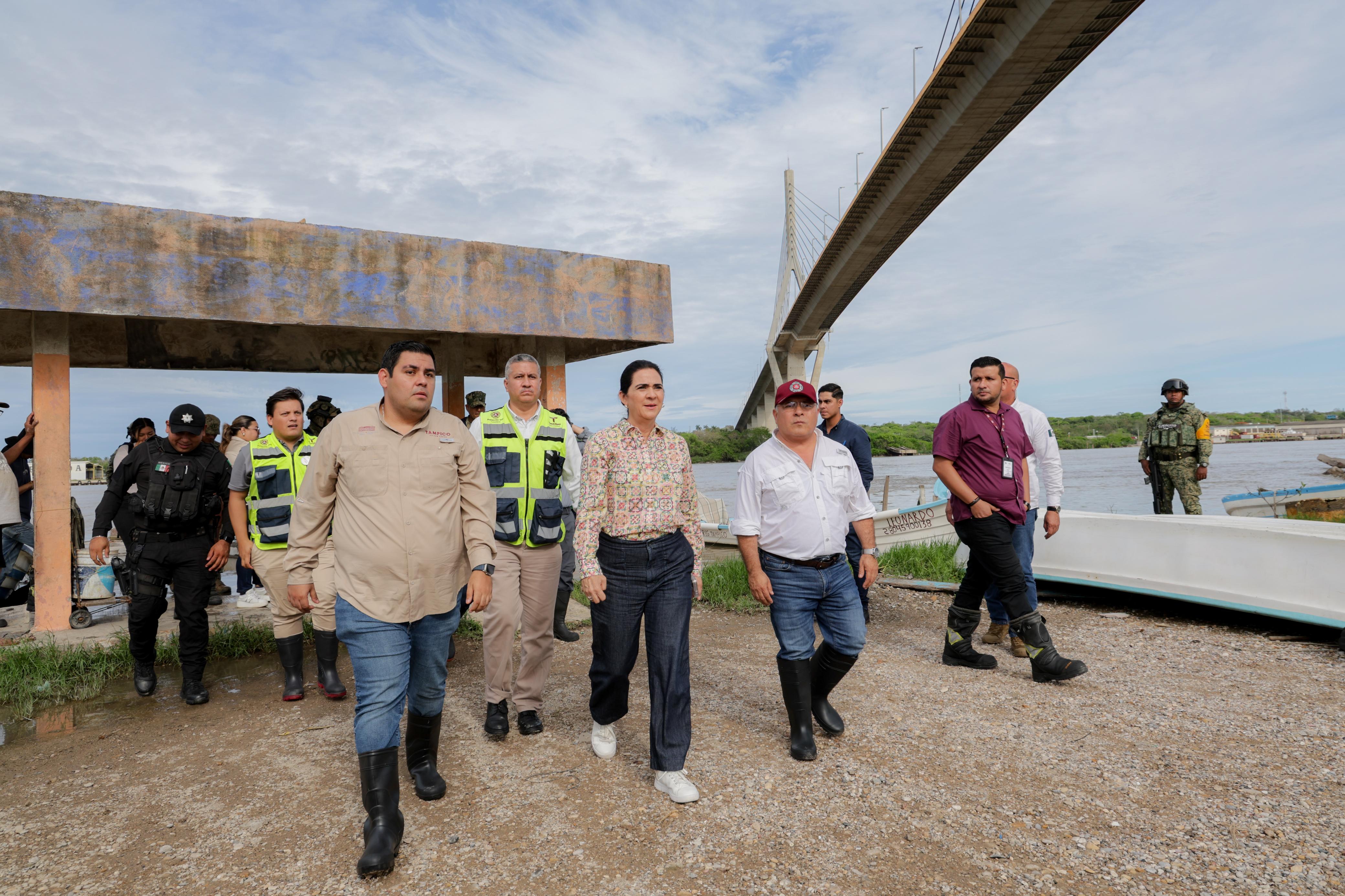 La alcaldesa porteña, acompañada por los titulares de las áreas de Protección Civil, José Antonio Marín Flores y Servicios Públicos, Ricardo Mora Alvarado, así como por representantes de la Guardia Nacional, Sedena, Bomberos, Protección Civil regional y Tránsito y Vialidad, sostuvo que su administración se mantiene alerta de las condiciones meteorológicas y del escurrimiento de las corrientes río arriba que puedan generar afectaciones en sectores colindantes a los ríos Pánuco y Tamesí.
