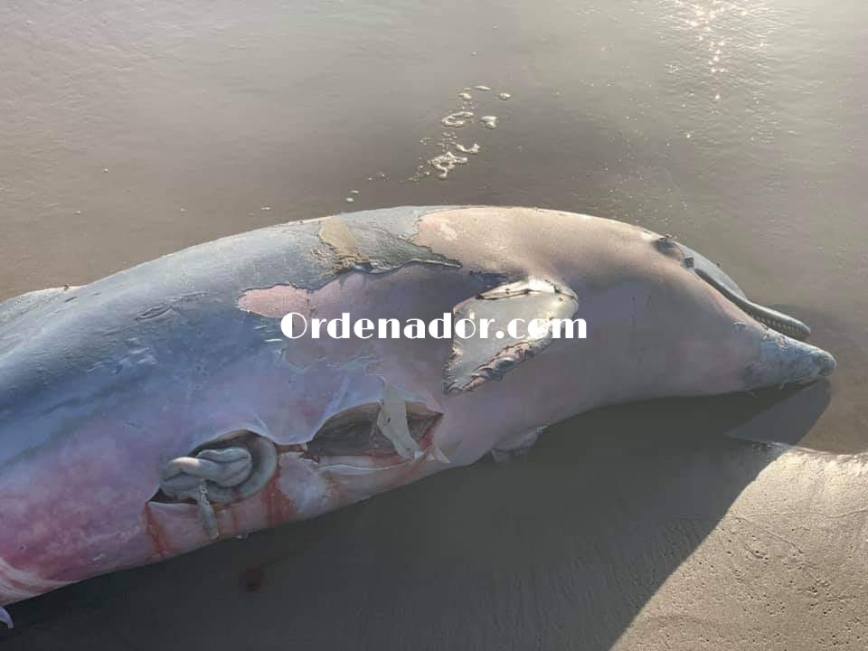 Madero, Tamps. (1 Junio 2019)El cadáver de un delfín adulto fue localizado en la playa de Miramar la mañana de este sábado, desconociéndose las causas de su muerte. Tenía las vísceras por fuera.