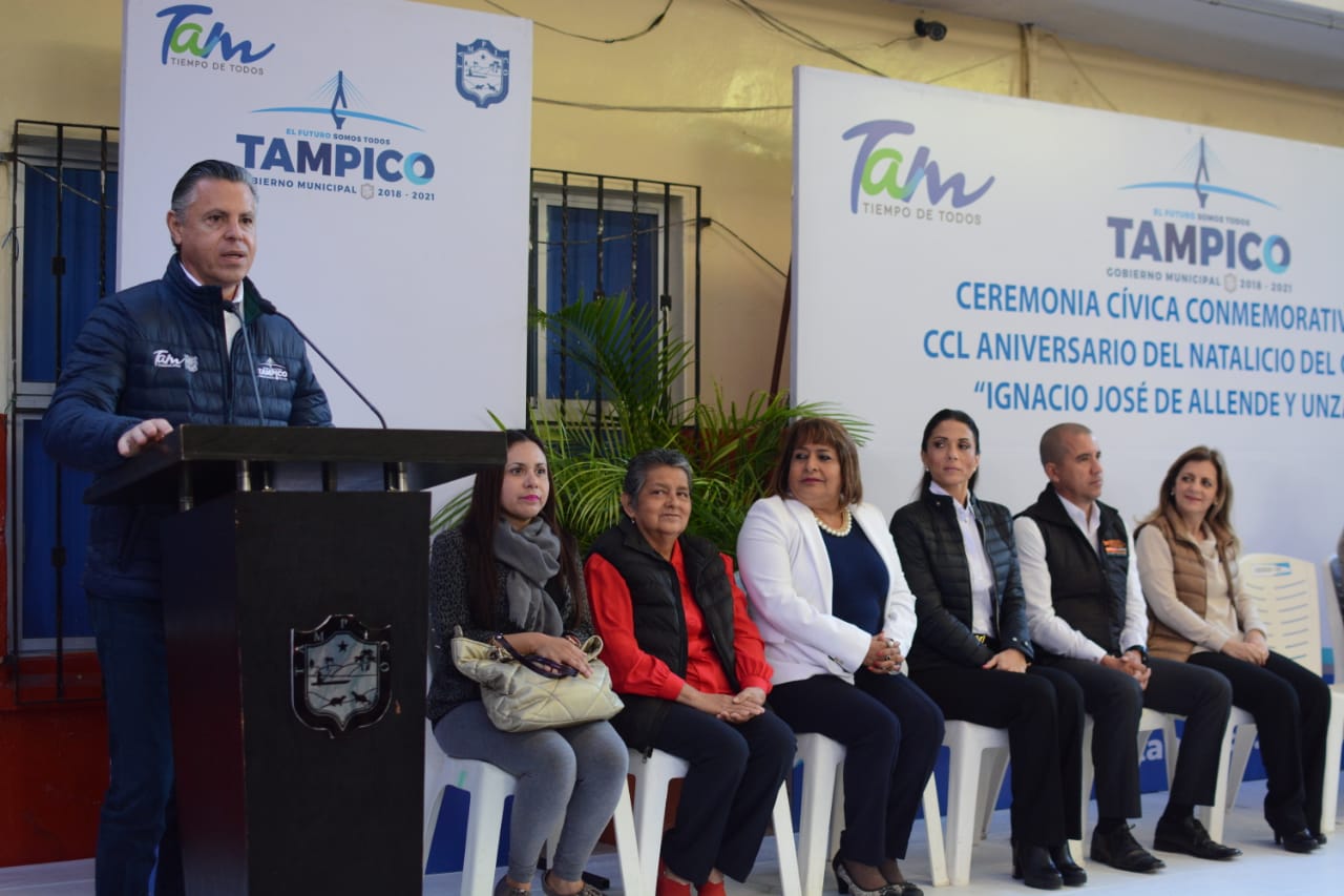 Durante la ceremonia, a la que también asistió el titular de la unidad ejecutiva de la Secretaría de Educación en el Gobierno del Estado, Mario Leal Rodríguez; el jefe de la comuna reconoció la aportación del General Allende a la vida independiente de México y destacó que su ejemplo es retomado día a día en la transformación de Tampico y en el bienestar de sus habitantes.