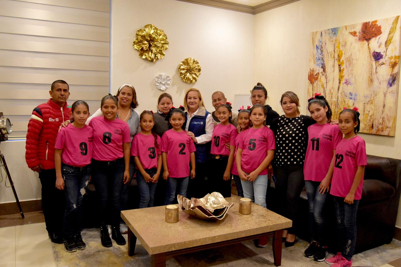 De igual manera, Amparán Cruz recibió en su oficina a alumnas de la Escuela Primaria “Emilio Carranza’’ de Villa Cuauhtémoc, quienes participaron en las etapas municipal y regional del Torneo de Volibol