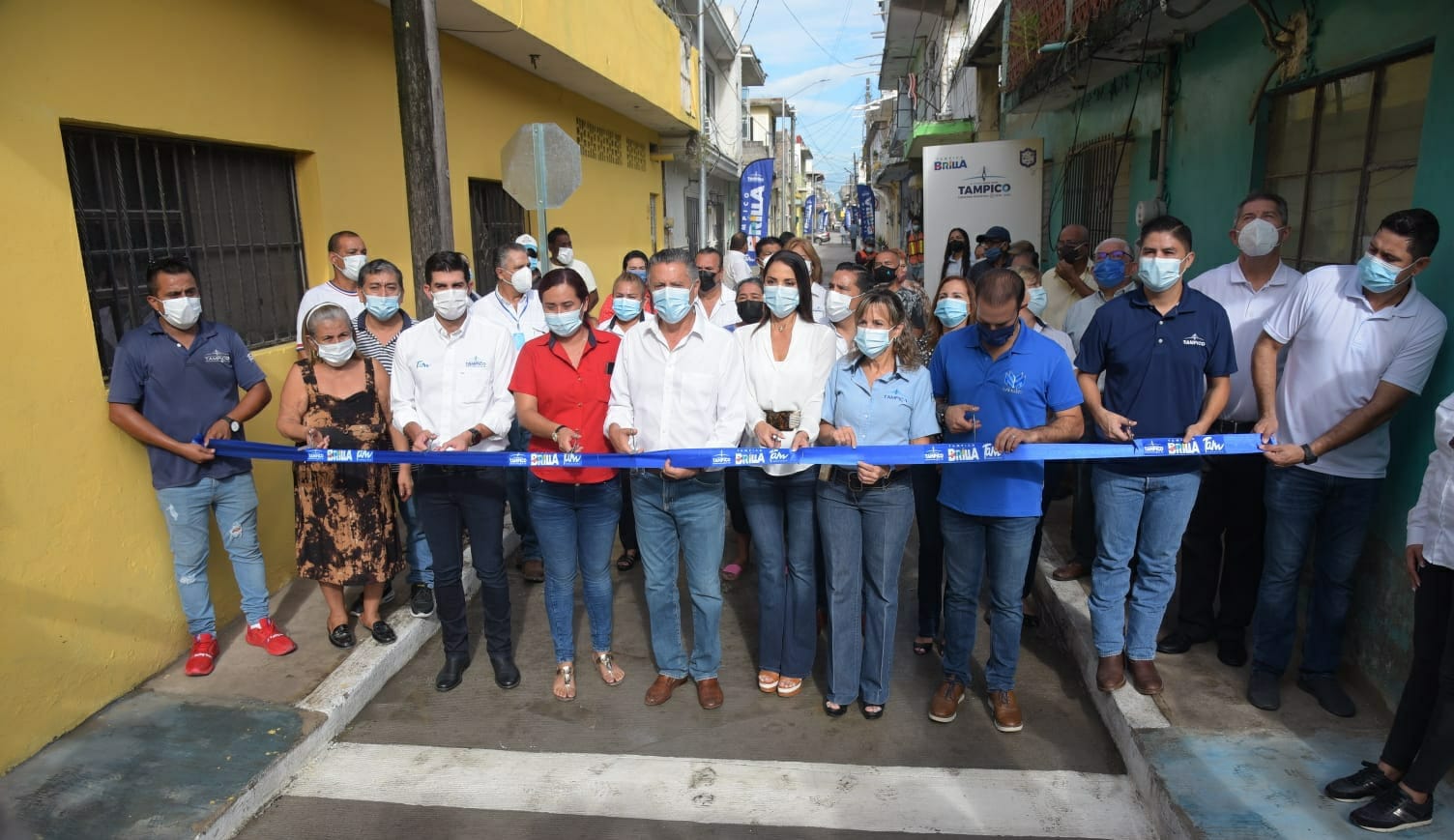 Tampico,Tamps. (13 Septiembre 2021)Mediante una inversión superior a los dos millones 500 mil pesos, el Presidente Municipal Chucho Nader inauguró este lunes la pavimentación a base de concreto hidráulico y reposición hidrosanitaria de la privada La Paz en la colonia Cascajal, atendiendo un rezago que por más de 60 años afectó la movilidad de cientos de vecinos de este céntrico sector.