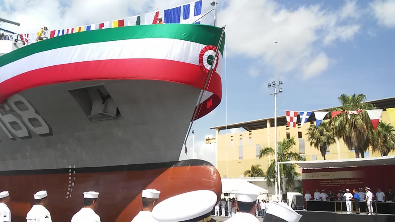 Tampico, Tam.- En los astilleros de la Secretaría de la Marina se realiza la botadura de la Patrulla Oceánica Tabasco PO-168, siendo la madrina Beatriz Gutiérrez Müller, Primera Dama de México.