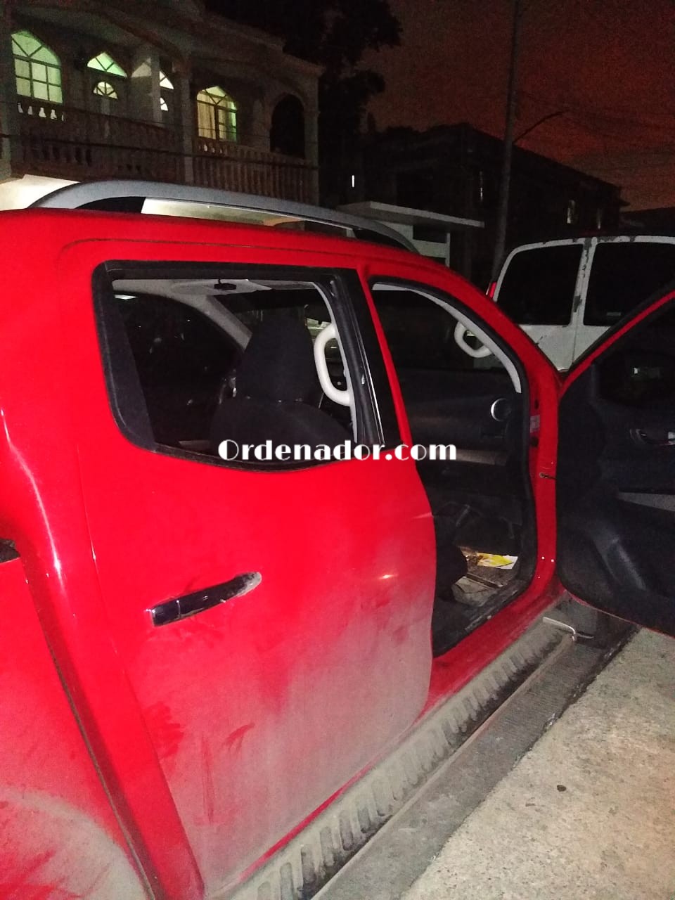 La unidad a la que le fue ocasionado el costoso daño en una de las puertas traseras, es una camioneta Nissan Frontier color roja doble cabina de modelo reciente, cuya propietaria se encontraba en el festejo cuando le pidieron que si podía mover el vehículo.
