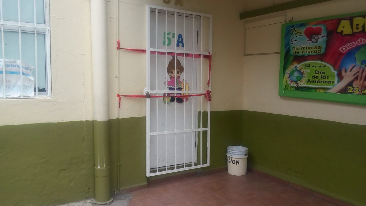 "En efecto, se tuvieron que clausurar tres aulas de grupos, dónde están los grupos de: primero, segundo y quinto grado...el aula de tecnología educativa. Vino una persona a iniciar el peritaje porque si ustedes observan y ven la situación del inmueble, más que los techos es la infraestructura del mismo: pilares, las bases de la institución que contando con 70 años al servicio de la comunidad ya está dando la caducidad que tiene"