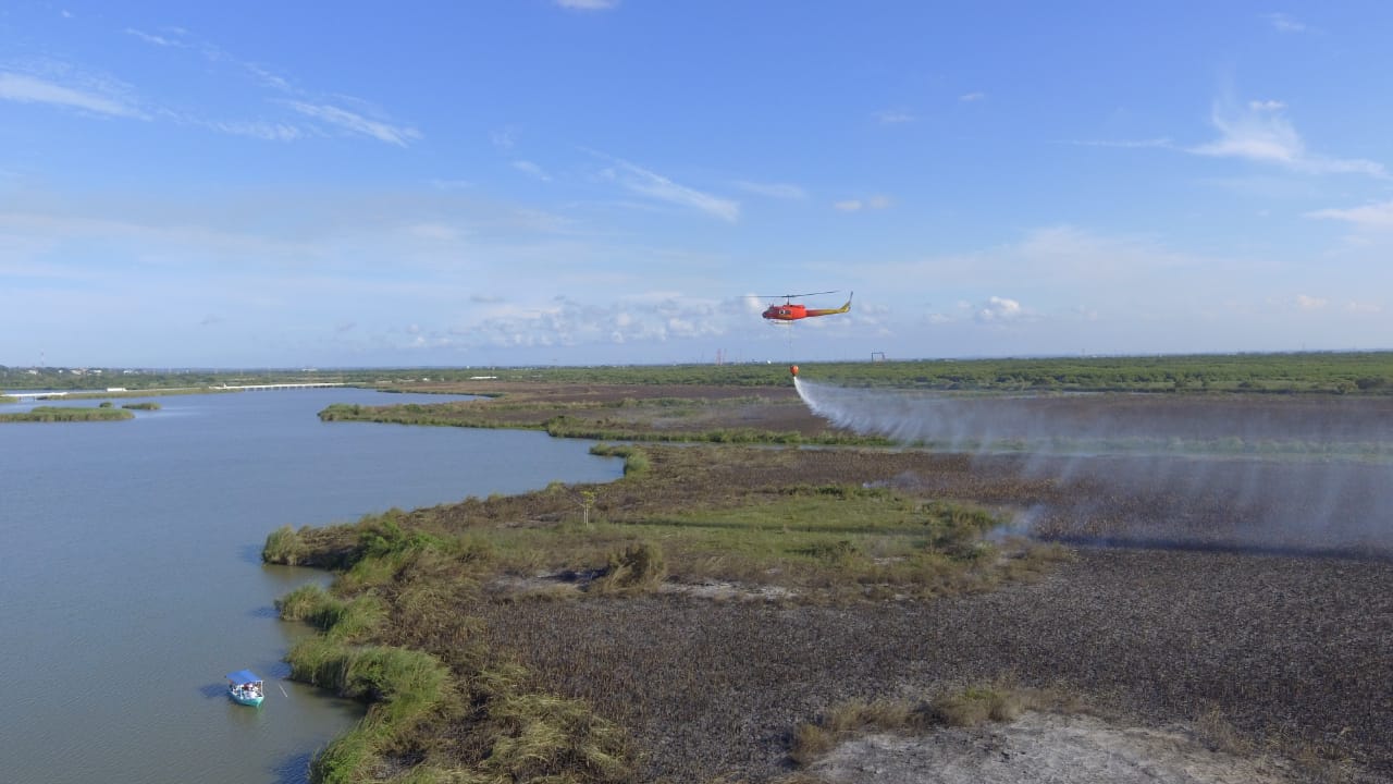 Tampico,Tamps. (13 Junio 2019 ) Luego de que se registrara un incendio en la zona de tulares de varios islotes ubicados en la laguna del chairel, afectando una amplia superficie de este vaso lacustre, personal de Protección Civil del Ayuntamiento de Tampico en coordinación con especialistas de la Secretaría de Marina, Capitanía de puerto y la procuraduría Federal de protección al medio ambiente, llevaron a cabo las tareas de supervisión y combate de este fenómeno.