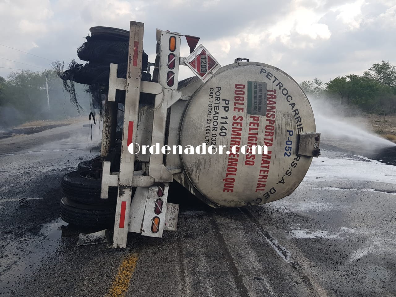Explota remolque de pipa tras volcadura