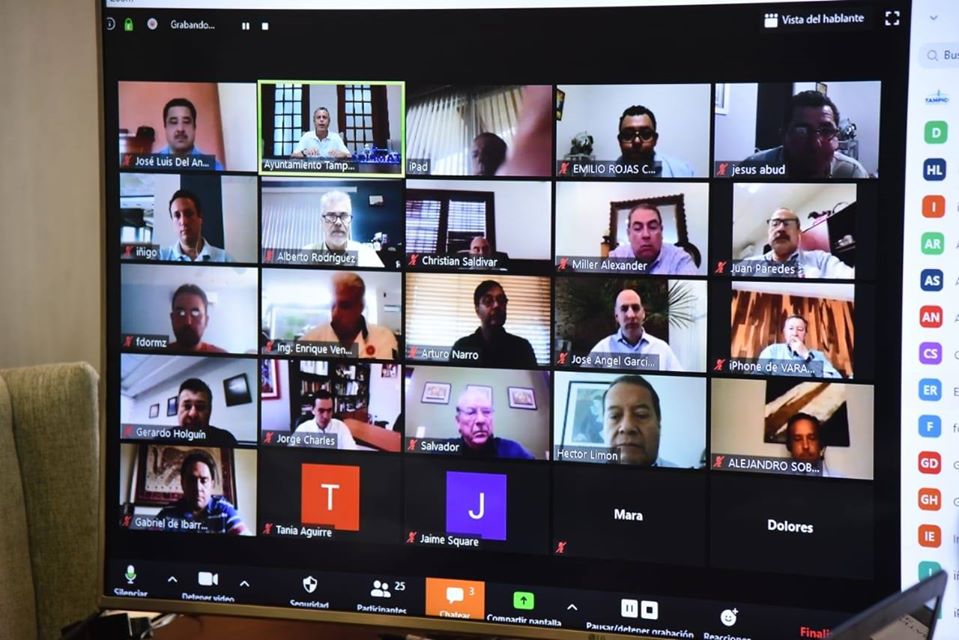 Tampico,Tamps. (22 Abril 2020)El Presidente Municipal Chucho Nader sostuvo esta martes una importante video conferencia con empresarios miembros del Consejo de Instituciones Empresariales del Sur de Tamaulipas a quienes expuso las acciones que en materia preventiva se han desarrollado en el municipio con el propósito de contener la epidemia del Covid-19; así como los programas de apoyo a grupos vulnerables y el plan de recuperación económica que se pondrá en marcha para salir adelante de la contingencia.