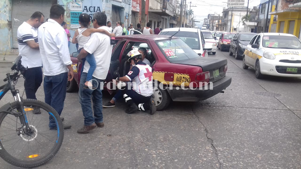 Peritos de la Dirección de Vialidad del puerto dieron a conocer que el choque fue provocado por el operador de un carro Nissan Tsuru color guinda con franja amarilla habilitado como taxi que se desplazaba por la calle Alarcón.