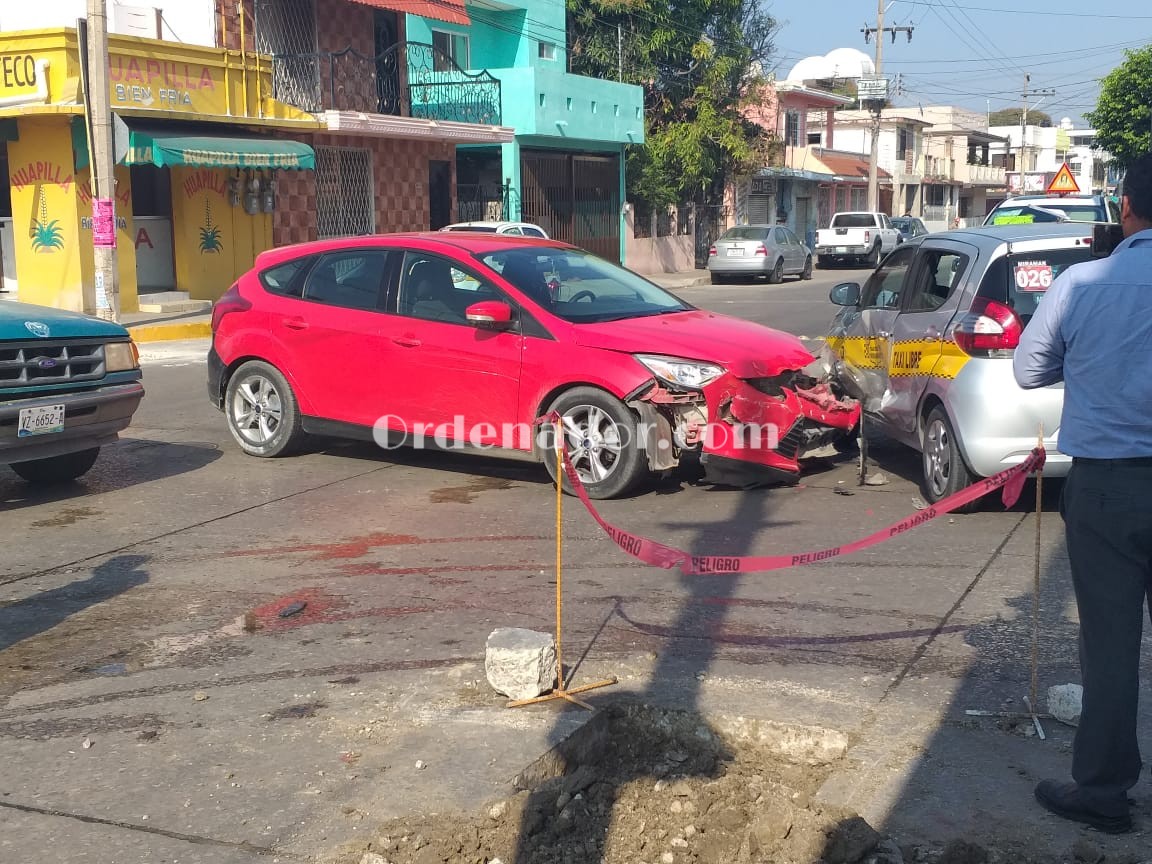 Fue a las 15:30 horas en el cruce de las calles Allende y Francia de la colonia Vicente Guerrero que se registró el percance entre un vehículo habilitado como taxi y un carro de la marca Mazda en color rojo.