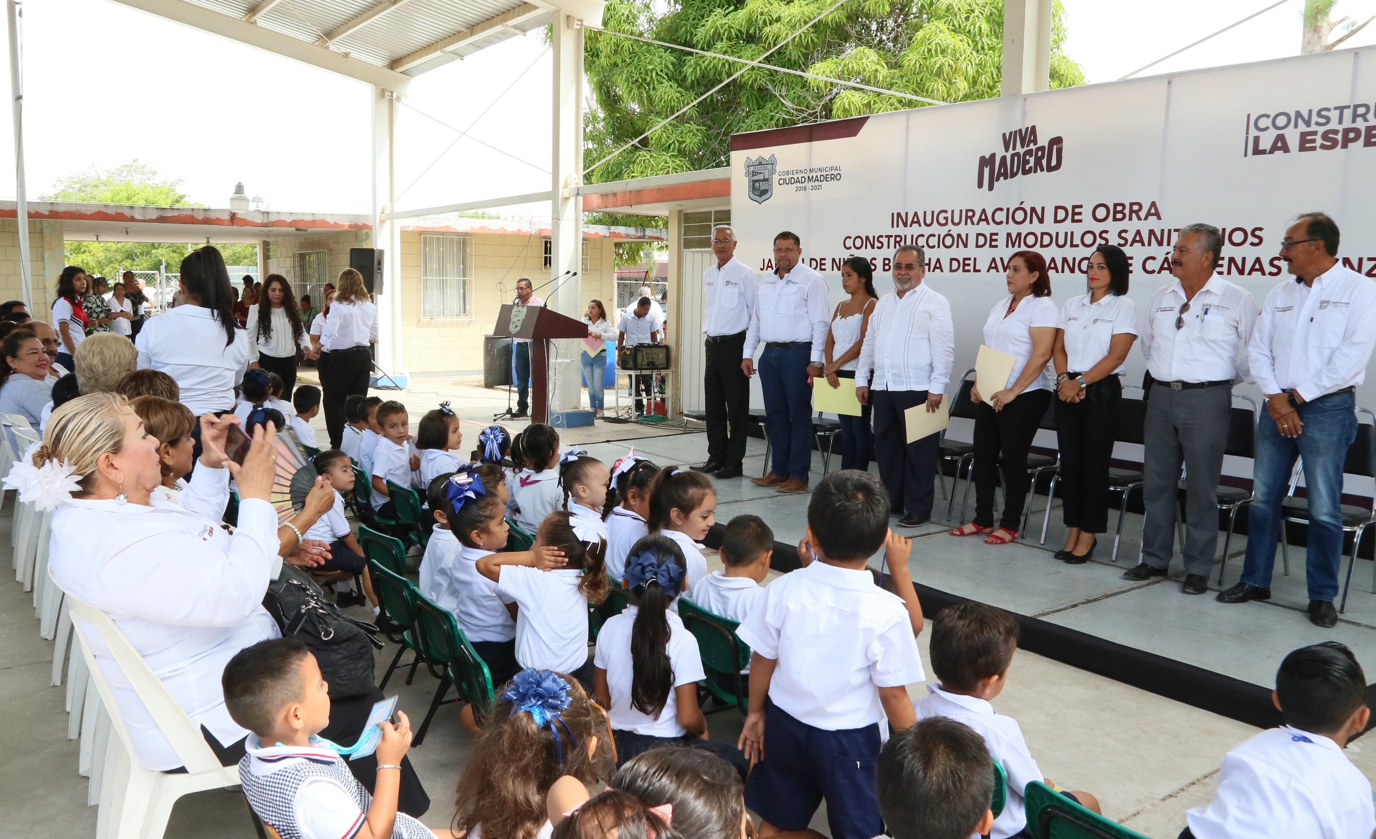 Esta ocasión, fue el jardín de niños Bertha del Avellano Cárdenas González donde se hizo entrega de la construcción de módulos sanitarios beneficiando a más de 135 niños.