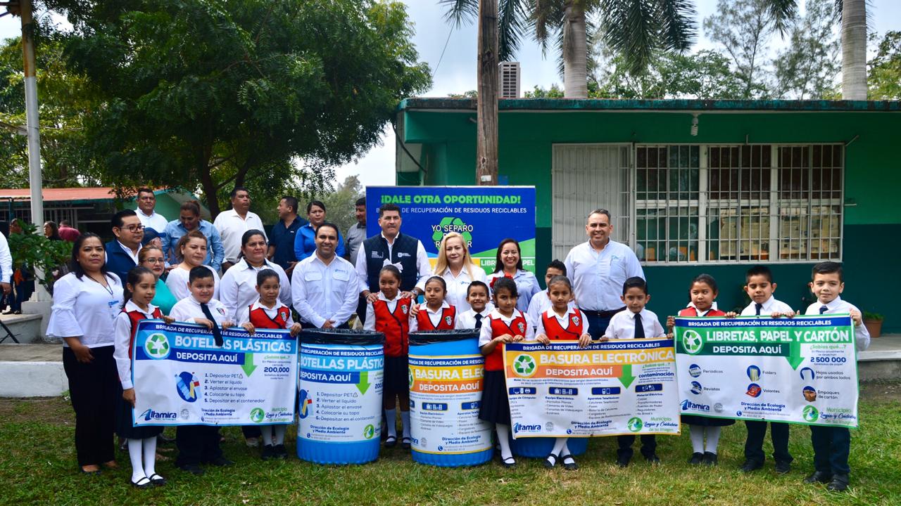 Amparán Cruz, quien estuvo acompañada de los diputados locales Karla Mar Loredo y Miguel Gómez Orta, procedió a la instalación de la Brigada de Recuperación de Residuos Reciclables "Dale otra Oportunidad", a través de la cual se recolectan residuos de papel, botellas de plástico y desechos electrónicos generados en los planteles escolares del municipio, así como al desarrollo de la actividad "Sembrando Conciencia" y la activación del programa "Huertos Escolares".