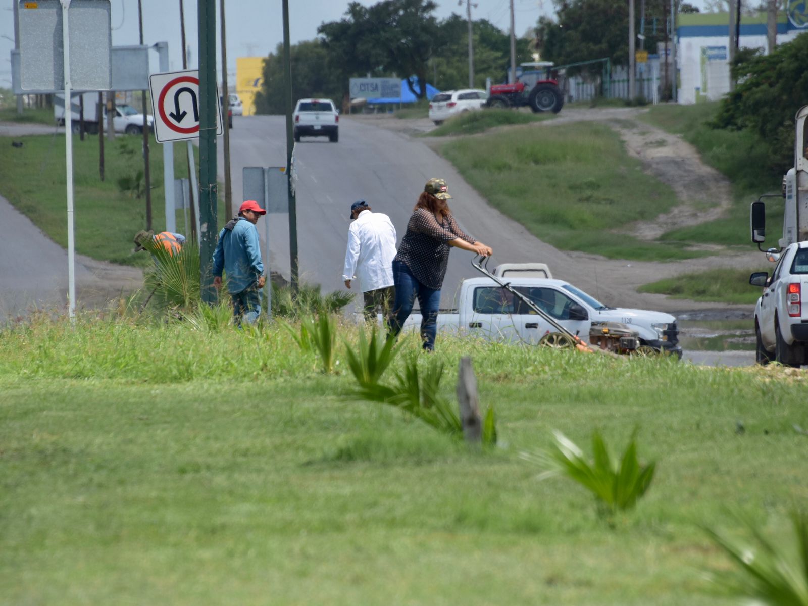 Altamira,Tamps. (17 Junio 2021)Atendiendo lo comprendido en los programas de mejoramiento integral, por instrucciones de la presidenta municipal Alma Laura Amparán Cruz, personal de la Secretaría de Servicios Públicos, a cargo de Armando Olvera Pérez, labora en la limpieza y mantenimiento de las principales avenidas de la ciudad con acciones de chapodo y embellecimiento del camellón central de la Avenida de la Industria y del Libramiento Altamira.