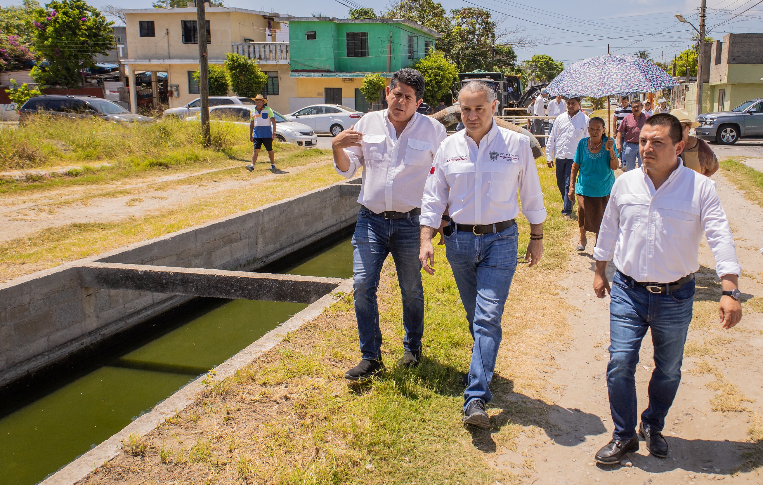 Así lo constató el Presidente Municipal al supervisar los trabajos de limpieza, retiro de sedimentos del canal ademado número 27 ubicado en calle Emiliano Zapata y Graciano Sánchez, del sector Candelario Garza.