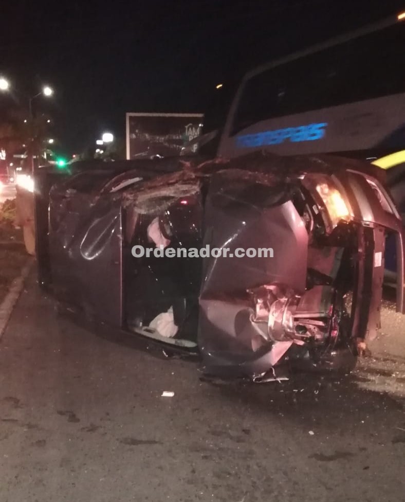 Oficiales de tránsito que tomaron conocimiento del fuerte encontronazo, dieron a conocer que la unidad era conducida por el bulevar López Mateos de poniente a oriente, y ante el exceso de velocidad su tripulante perdió el control e impactó a su pasó una palmera de ornato a la cual derribó, para terminar chocando contra el poste del servicio de alumbrado público, quedando finalmente el vehículo volcado sobre su costado.